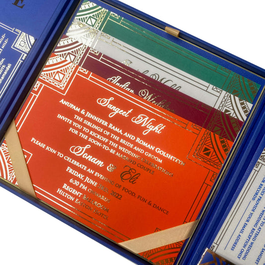 Indulge in luxury boxed invitations, crafted with creativity and designed for those seeking unique wedding invites that stand apart. Explore our collection of meticulously curated designs, where each invitation is a work of art, promising to elevate your special day. From intricate detailing to exquisite materials, our creations redefine elegance and sophistication. Make a statement with invitations that reflect your distinct style and set the stage for a celebration like no other. Explore our exclusive range now.