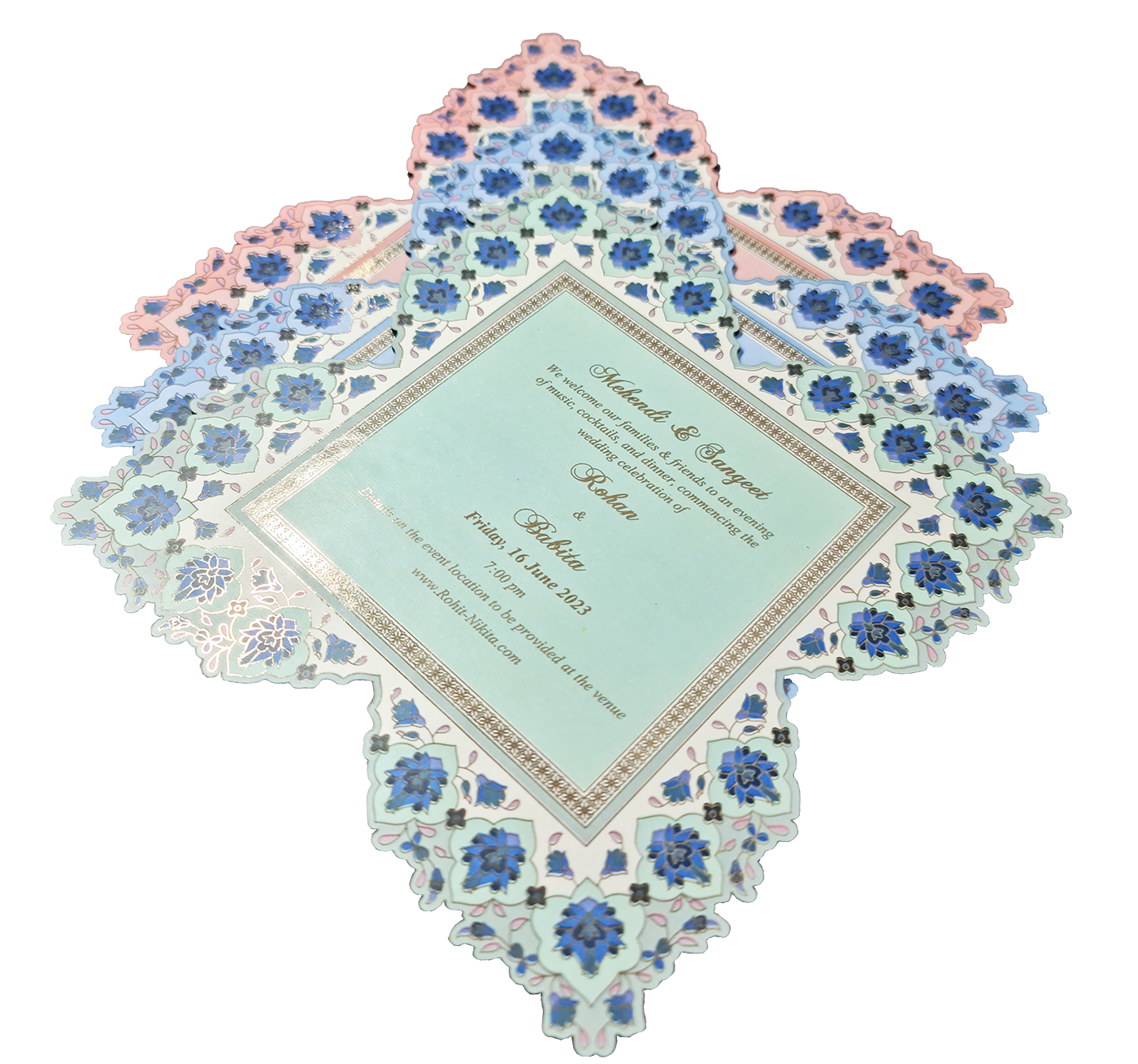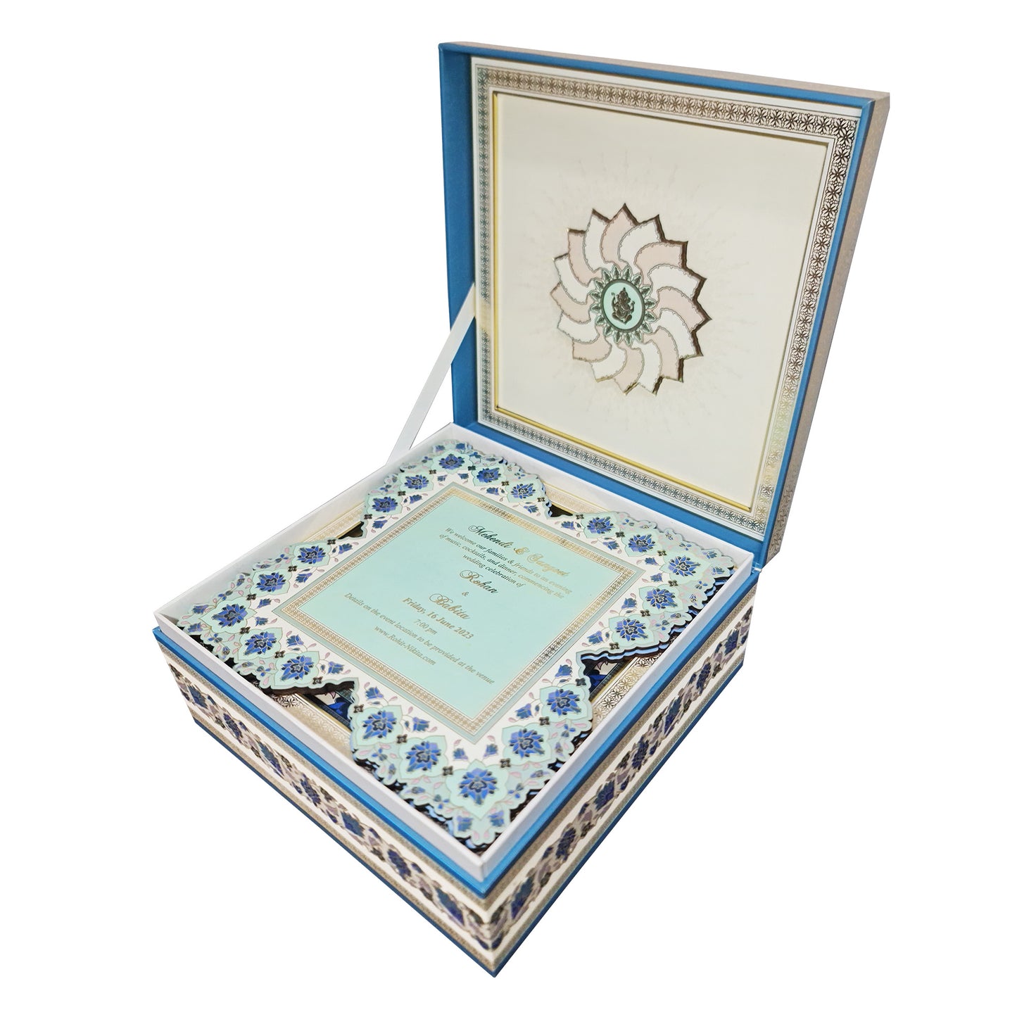 This invitation box is not merely an invite but an experience, designed to awe and honor the guests with a preview of the wedding’s splendor. Customize the box with the couple’s names and wedding details, etched in gold lettering, to add a personal touch to this beautiful prelude to matrimony.